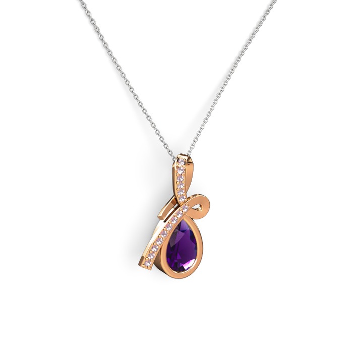 Pembe kuvars ve ametist 925 ayar rose altın kaplama gümüş kolye (40 cm gümüş rolo zincir)