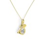 Pembe kuvars ve beyaz zirkon 14 ayar altın kolye (40 cm gümüş rolo zincir)