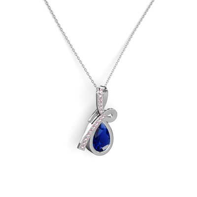 Pembe kuvars ve lab safir 14 ayar beyaz altın kolye (40 cm beyaz altın rolo zincir)