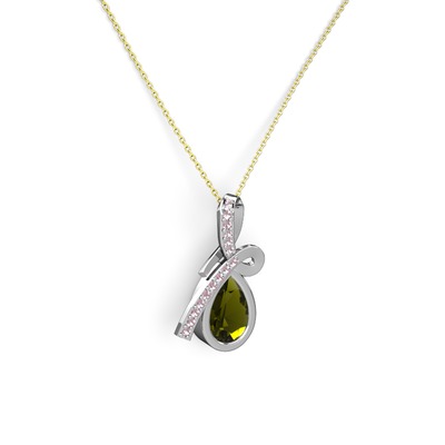 Pembe kuvars ve peridot 925 ayar gümüş kolye (40 cm gümüş rolo zincir)