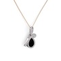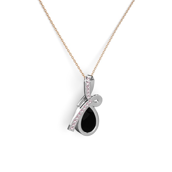 Pembe kuvars ve siyah zirkon 14 ayar beyaz altın kolye (40 cm rose altın rolo zincir)
