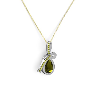 Peridot 14 ayar beyaz altın kolye (40 cm altın rolo zincir)