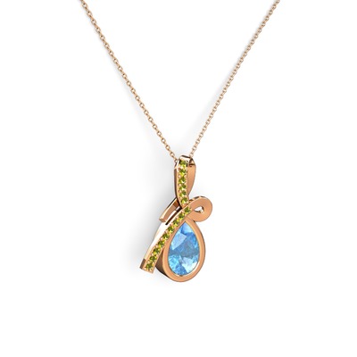 Peridot ve akuamarin 14 ayar rose altın kolye (40 cm rose altın rolo zincir)