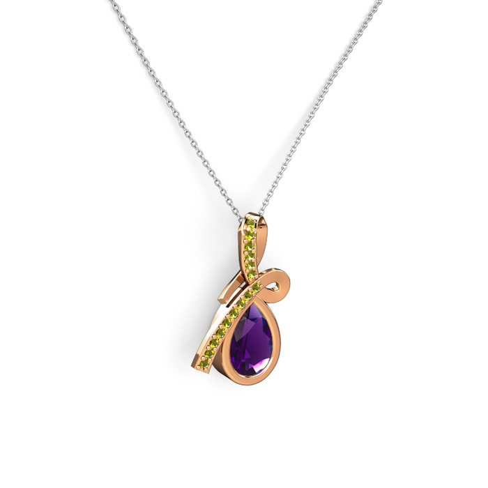 Peridot ve ametist 8 ayar rose altın kolye (40 cm gümüş rolo zincir)