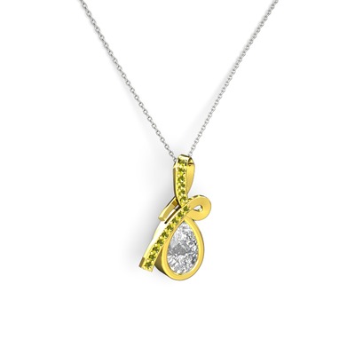 Peridot ve beyaz zirkon 8 ayar altın kolye (40 cm beyaz altın rolo zincir)