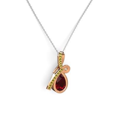 Peridot ve garnet 925 ayar rose altın kaplama gümüş kolye (40 cm beyaz altın rolo zincir)
