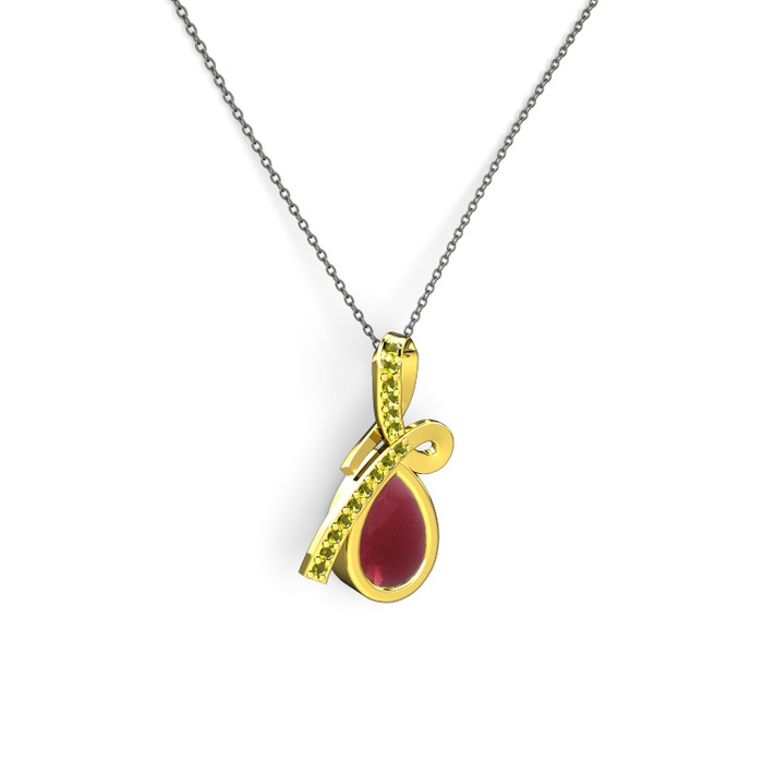 Peridot ve kök yakut 8 ayar altın kolye (40 cm gümüş rolo zincir)