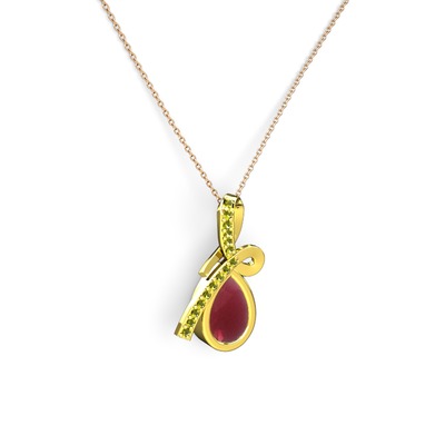 Peridot ve kök yakut 925 ayar altın kaplama gümüş kolye (40 cm gümüş rolo zincir)