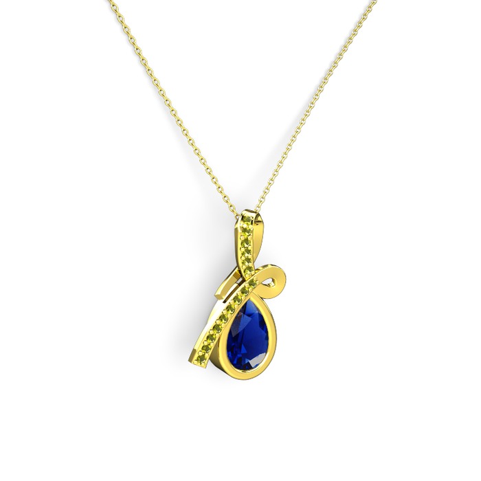 Peridot ve lab safir 14 ayar altın kolye (40 cm altın rolo zincir)