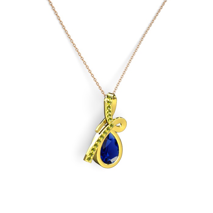 Peridot ve lab safir 18 ayar altın kolye (40 cm rose altın rolo zincir)