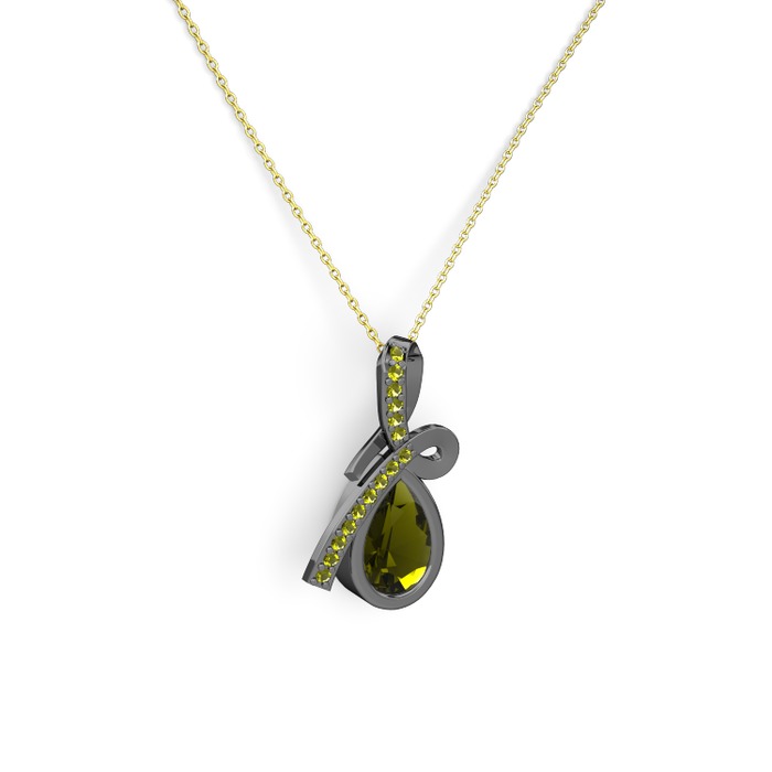 Peridot 925 ayar siyah rodyum kaplama gümüş kolye (40 cm altın rolo zincir)