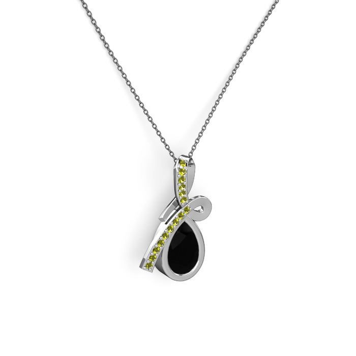 Peridot ve siyah zirkon 8 ayar beyaz altın kolye (40 cm gümüş rolo zincir)