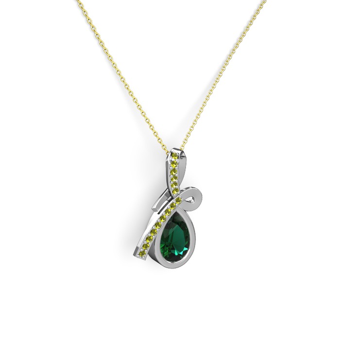 Peridot ve yeşil kuvars 14 ayar beyaz altın kolye (40 cm gümüş rolo zincir)
