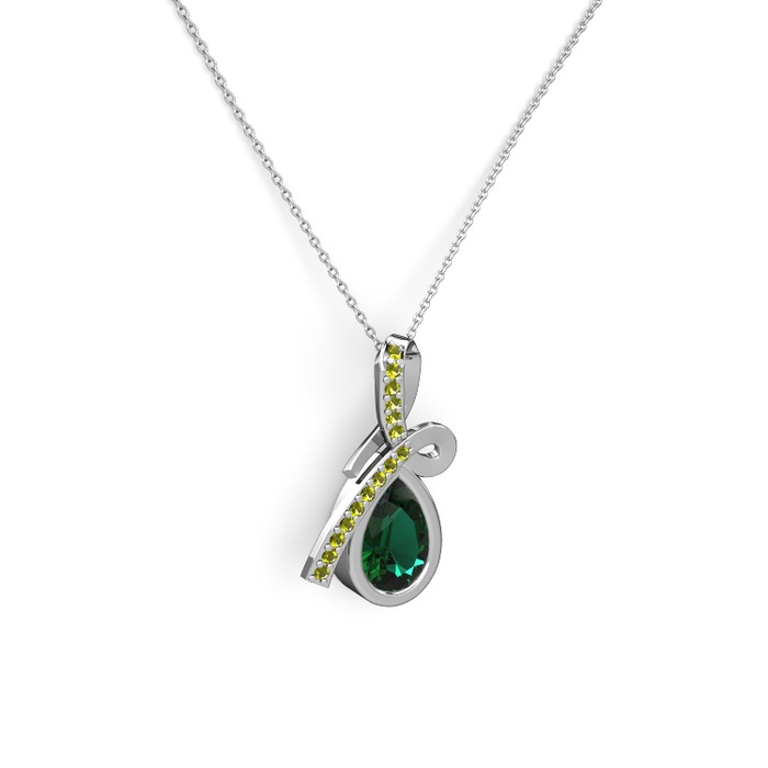Peridot ve yeşil kuvars 14 ayar beyaz altın kolye (40 cm gümüş rolo zincir)