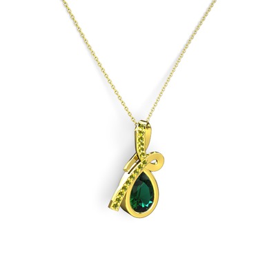 Peridot ve yeşil kuvars 925 ayar altın kaplama gümüş kolye (40 cm altın rolo zincir)