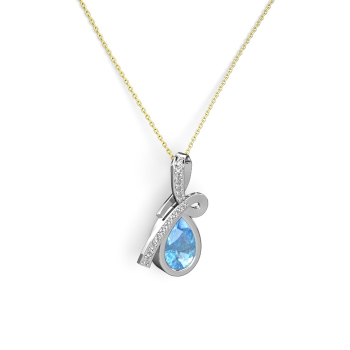 Pırlanta ve akuamarin 18 ayar beyaz altın kolye (0.225 karat, 40 cm altın rolo zincir)