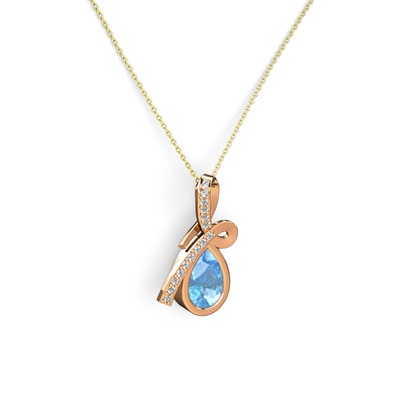 Pırlanta ve akuamarin 8 ayar rose altın kolye (0.225 karat, 40 cm altın rolo zincir)