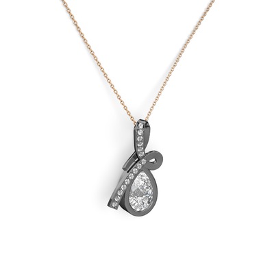 Pırlanta ve beyaz zirkon 925 ayar siyah rodyum kaplama gümüş kolye (0.225 karat, 40 cm rose altın rolo zincir)