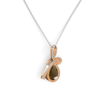 Pırlanta ve dumanlı kuvars 18 ayar rose altın kolye (0.225 karat, 40 cm beyaz altın rolo zincir)