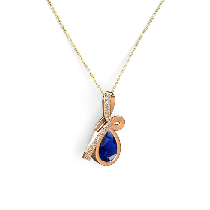 Pırlanta ve lab safir 18 ayar rose altın kolye (0.225 karat, 40 cm altın rolo zincir)