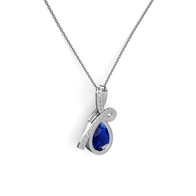 Pırlanta ve lab safir 8 ayar beyaz altın kolye (0.225 karat, 40 cm gümüş rolo zincir)