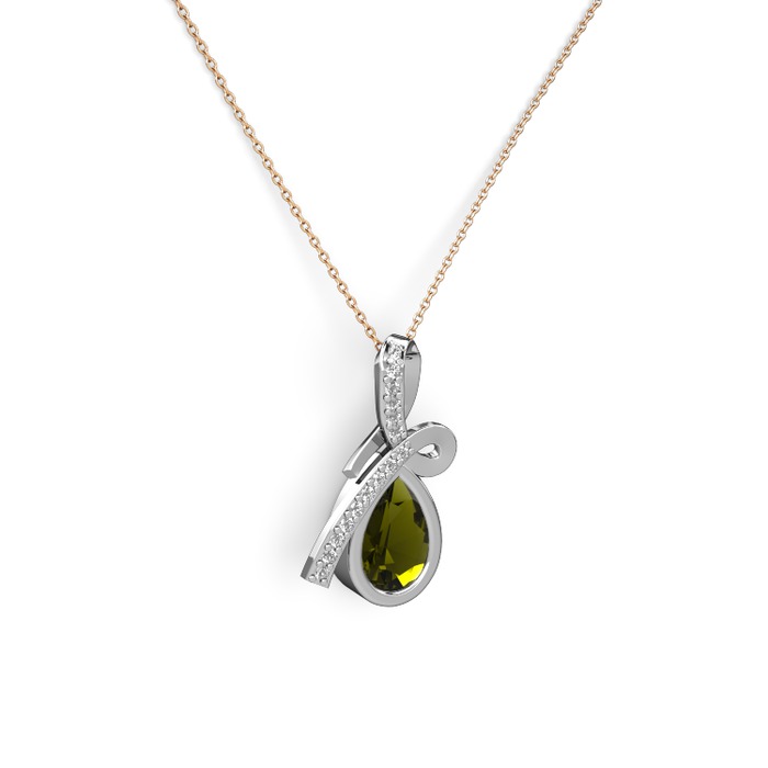 Pırlanta ve peridot 925 ayar gümüş kolye (0.225 karat, 40 cm gümüş rolo zincir)