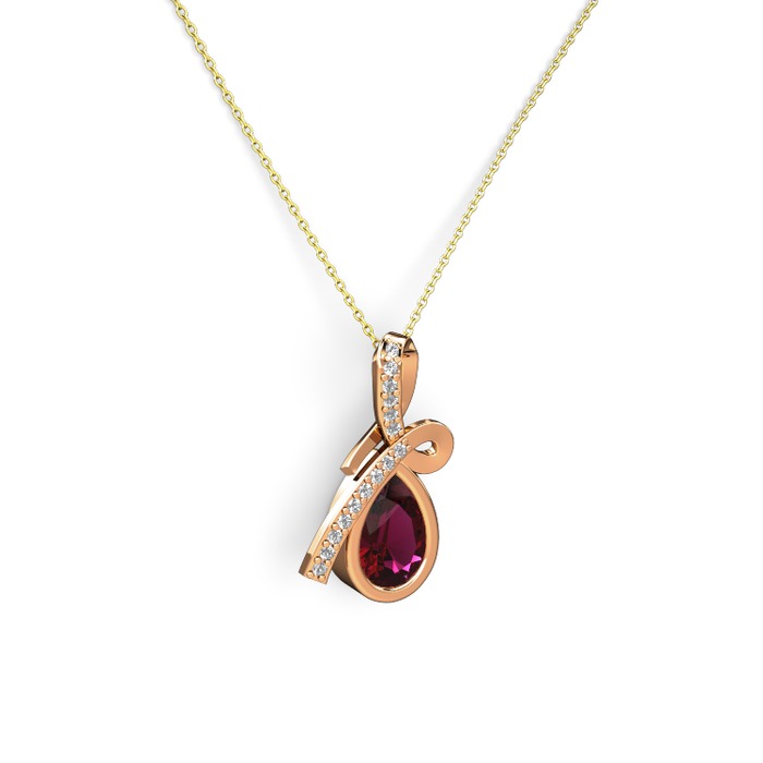 Pırlanta ve rodolit garnet 18 ayar rose altın kolye (0.225 karat, 40 cm altın rolo zincir)
