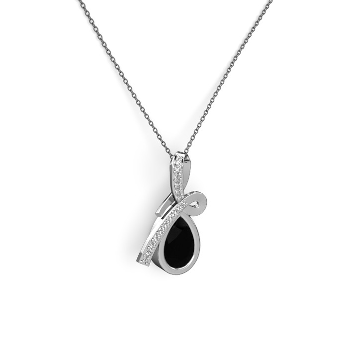 Pırlanta ve siyah zirkon 8 ayar beyaz altın kolye (0.225 karat, 40 cm gümüş rolo zincir)