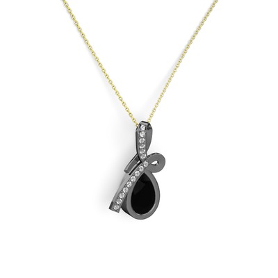 Pırlanta ve siyah zirkon 925 ayar siyah rodyum kaplama gümüş kolye (0.225 karat, 40 cm altın rolo zincir)