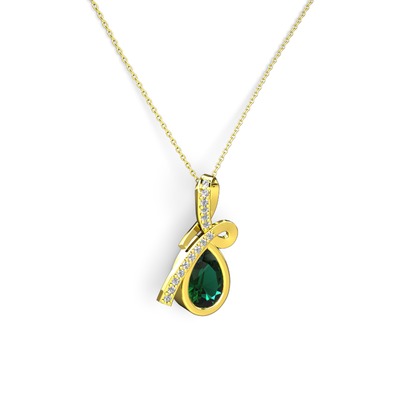 Pırlanta ve yeşil kuvars 14 ayar altın kolye (0.225 karat, 40 cm altın rolo zincir)