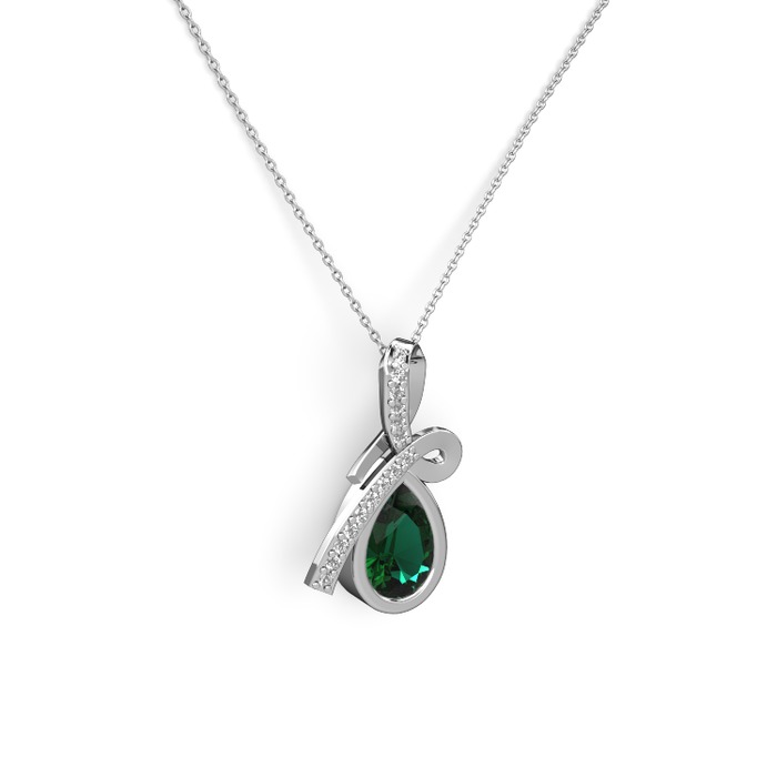 Pırlanta ve yeşil kuvars 18 ayar beyaz altın kolye (0.225 karat, 40 cm beyaz altın rolo zincir)