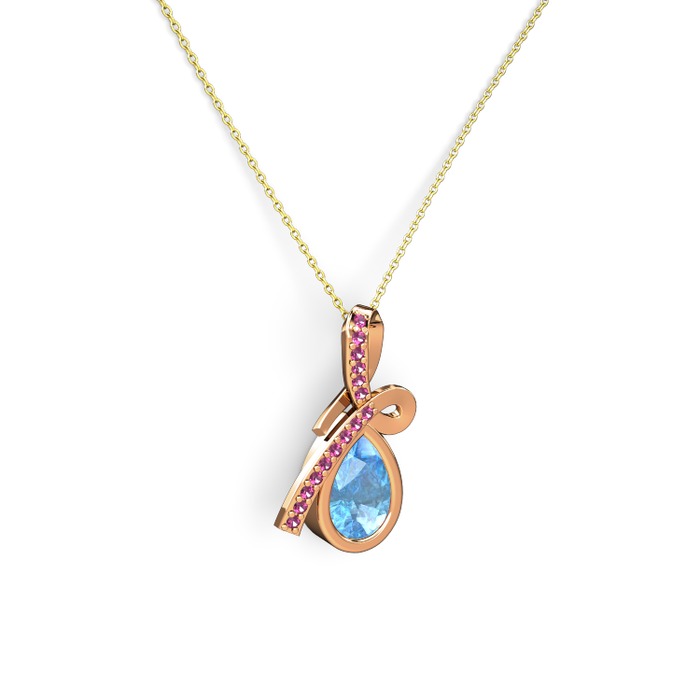 Rodolit garnet ve akuamarin 14 ayar rose altın kolye (40 cm gümüş rolo zincir)
