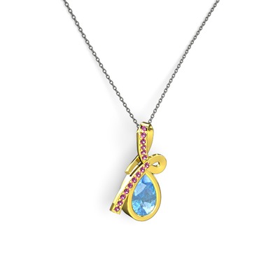 Rodolit garnet ve akuamarin 8 ayar altın kolye (40 cm gümüş rolo zincir)
