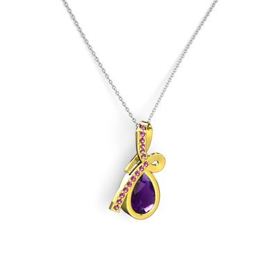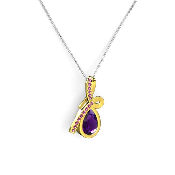 Rodolit garnet ve ametist 18 ayar altın kolye (40 cm beyaz altın rolo zincir)