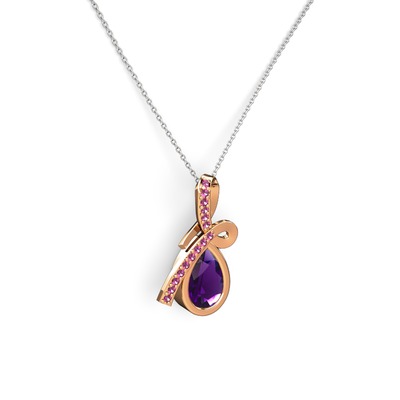 Rodolit garnet ve ametist 925 ayar rose altın kaplama gümüş kolye (40 cm beyaz altın rolo zincir)