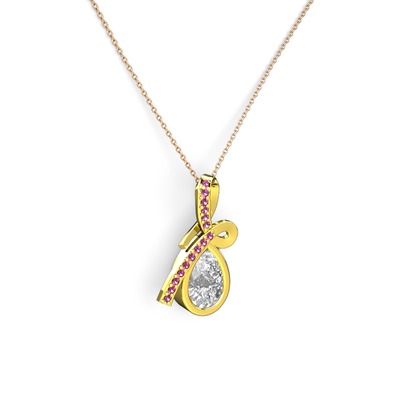 Rodolit garnet ve beyaz zirkon 18 ayar altın kolye (40 cm rose altın rolo zincir)