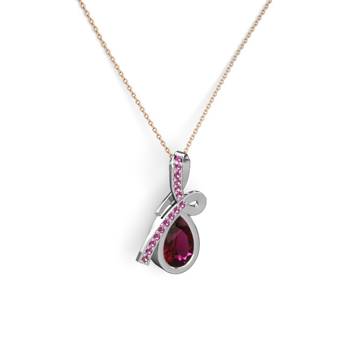 Rodolit garnet 925 ayar gümüş kolye (40 cm rose altın rolo zincir)