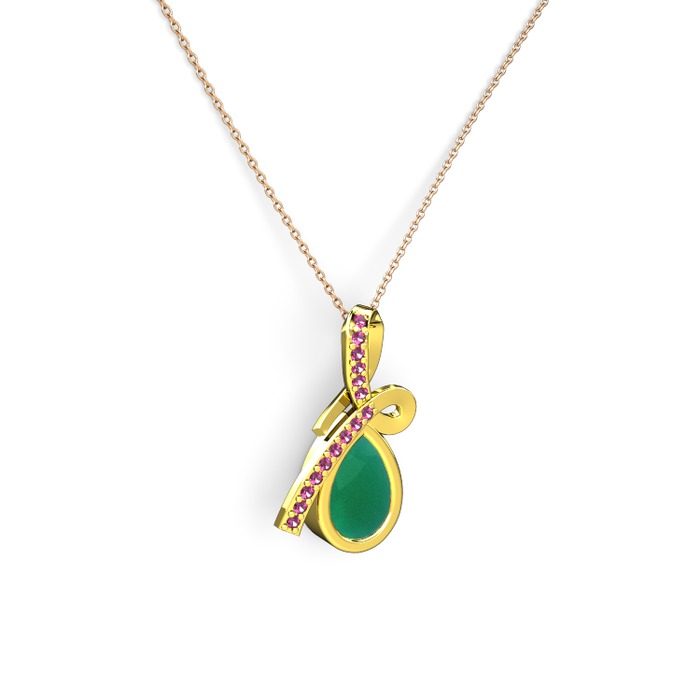 Rodolit garnet ve kök zümrüt 14 ayar altın kolye (40 cm rose altın rolo zincir)