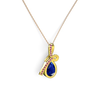 Rodolit garnet ve lab safir 925 ayar altın kaplama gümüş kolye (40 cm gümüş rolo zincir)