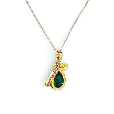 Rodolit garnet ve yeşil kuvars 14 ayar altın kolye (40 cm rose altın rolo zincir)