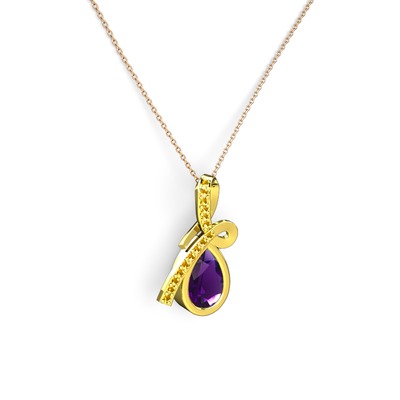 Sitrin ve ametist 14 ayar altın kolye (40 cm rose altın rolo zincir)