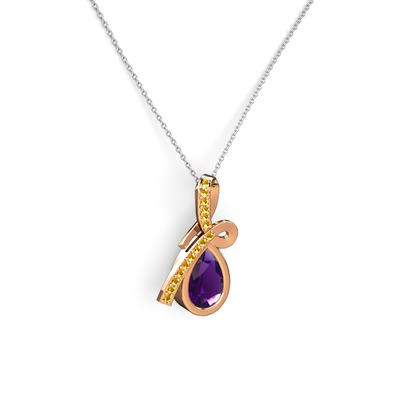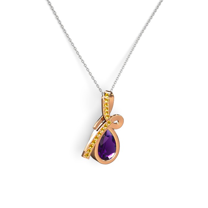 Sitrin ve ametist 8 ayar rose altın kolye (40 cm beyaz altın rolo zincir)