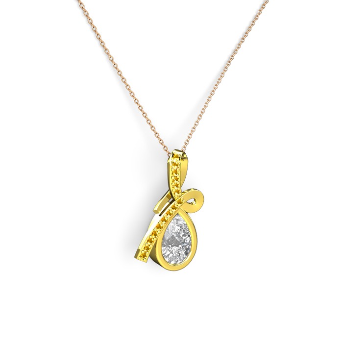 Sitrin ve beyaz zirkon 925 ayar altın kaplama gümüş kolye (40 cm rose altın rolo zincir)