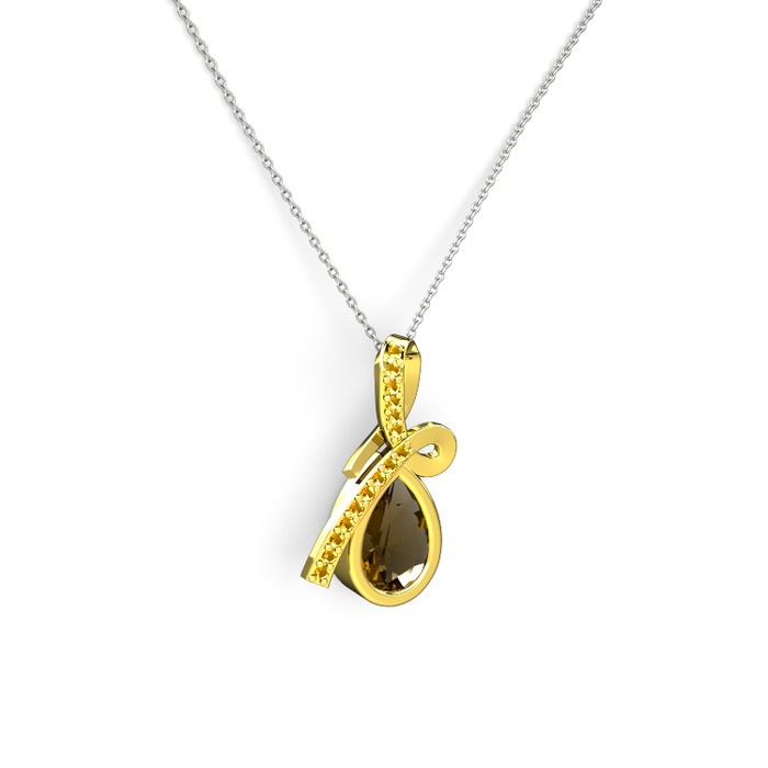Sitrin ve dumanlı kuvars 8 ayar altın kolye (40 cm gümüş rolo zincir)