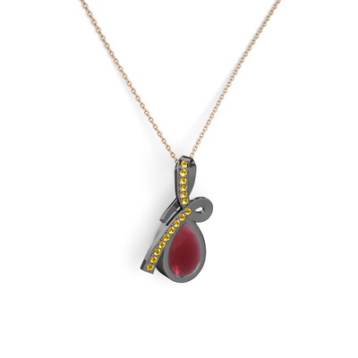 Sitrin ve kök yakut 925 ayar siyah rodyum kaplama gümüş kolye (40 cm rose altın rolo zincir)