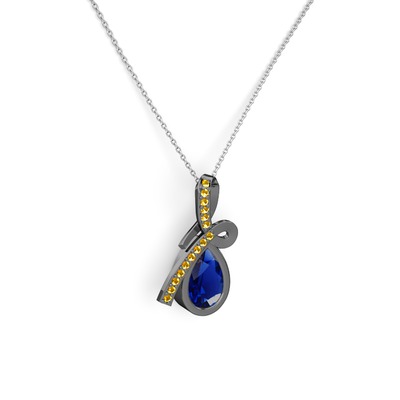 Sitrin ve lab safir 925 ayar siyah rodyum kaplama gümüş kolye (40 cm gümüş rolo zincir)