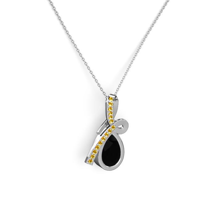 Sitrin ve siyah zirkon 14 ayar beyaz altın kolye (40 cm gümüş rolo zincir)