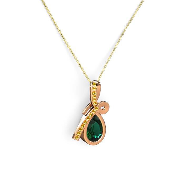 Sitrin ve yeşil kuvars 14 ayar rose altın kolye (40 cm gümüş rolo zincir)