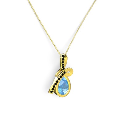 Siyah zirkon ve akuamarin 18 ayar altın kolye (40 cm altın rolo zincir)