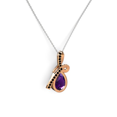 Siyah zirkon ve ametist 8 ayar rose altın kolye (40 cm beyaz altın rolo zincir)